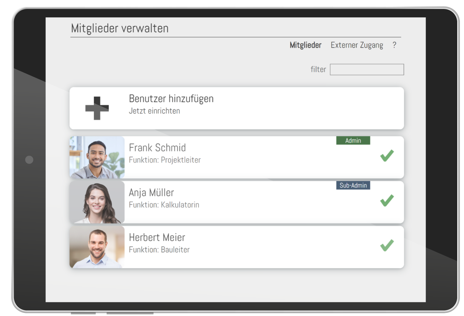 Eine Projektlizenz ist die beste Wahl, wenn Sie mit Partnern ausschreiben oder die Ausschreibung mit dem Bauherrn teilen möchten. |